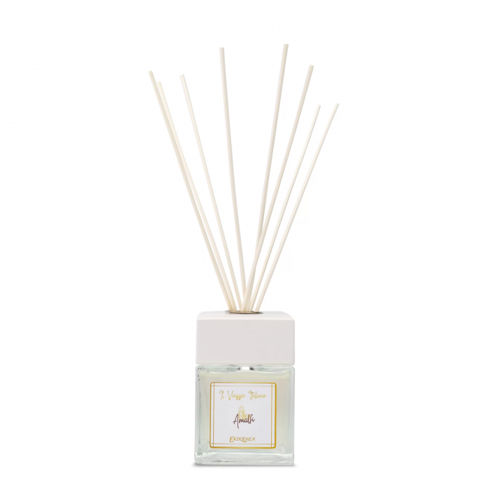 Lămâia și portocala se sparg de energie. Culoarea galbenă energizantă ca casele de pe Coasta Amalfi. Ylang ylang face parfumul persistent și plăcut.